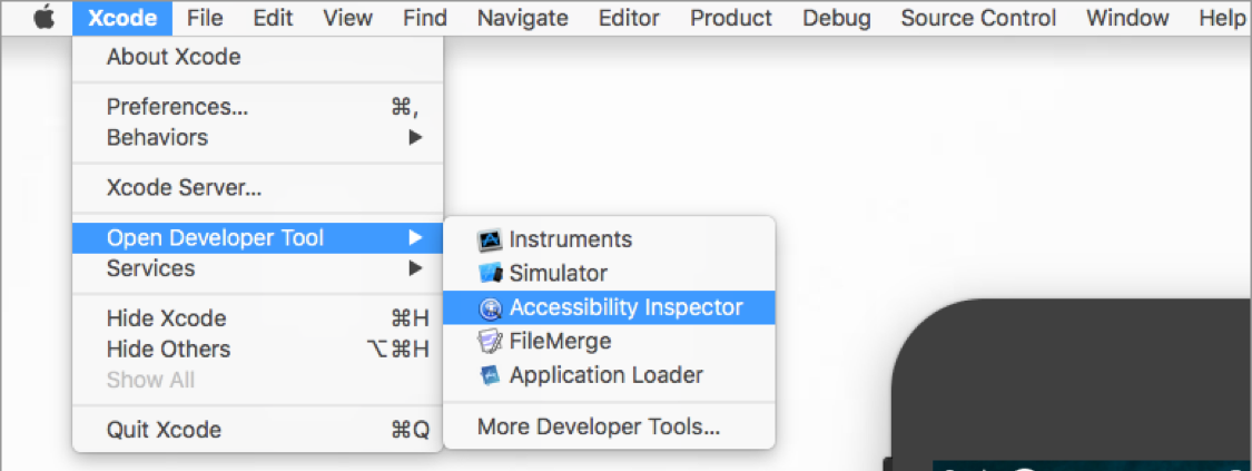 Use Xcode meny bar and open Accessibility Inspector. You will find it at Xcode ‣ Open Developer Tools ‣ Accessibility Inspector.
