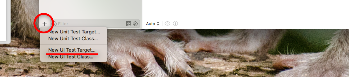 Then at the bottom left corner you will find a ”+” button, click on that one and then on “New UI Test Target…”